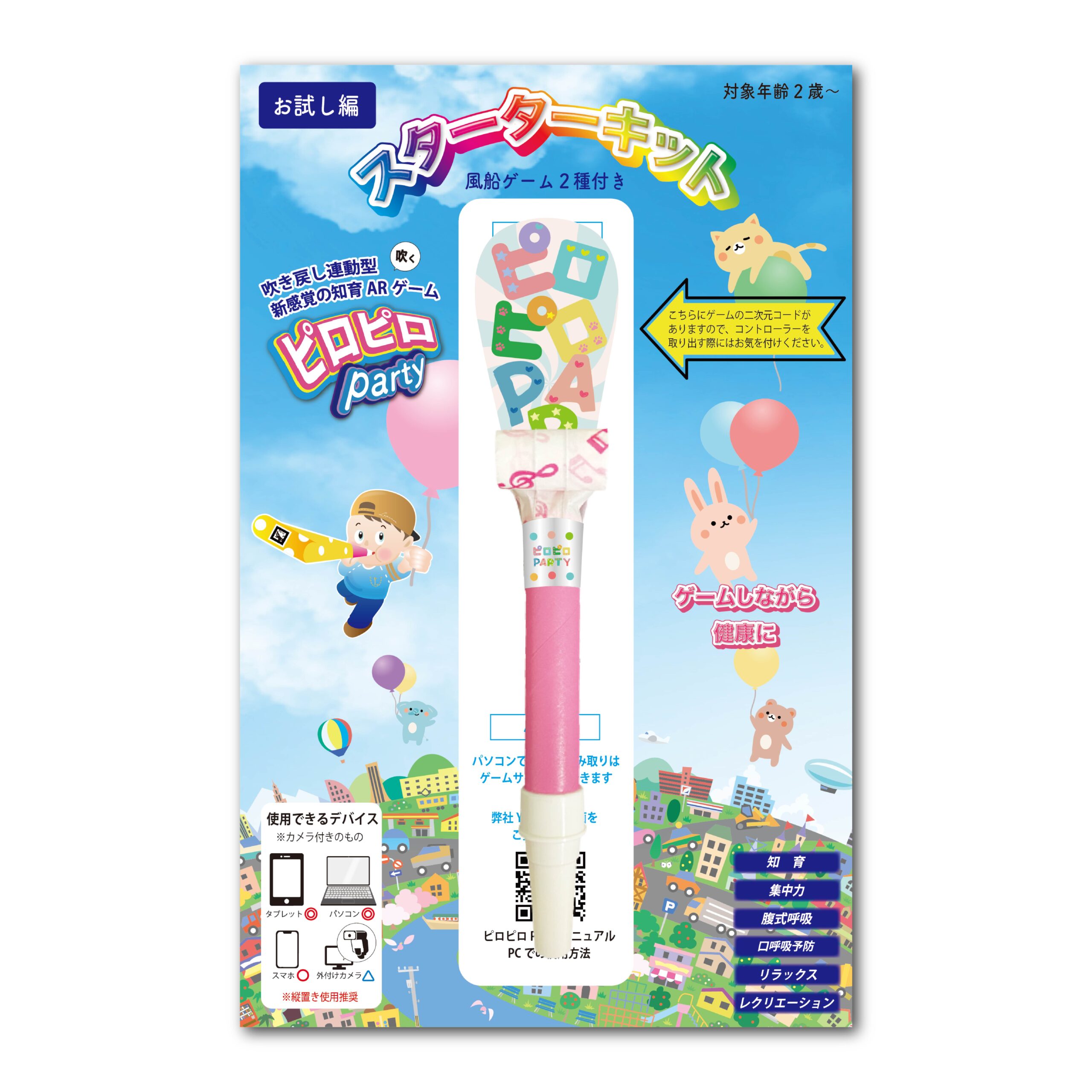 この商品は、昔から馴染みのある玩具『吹き戻し』を使い、楽しみながら口の機能向上が期待できます。また、数種類のゲームの中には、知育の要素を盛り込んだものもあり、飽きることなく毎日行える内容となっています。